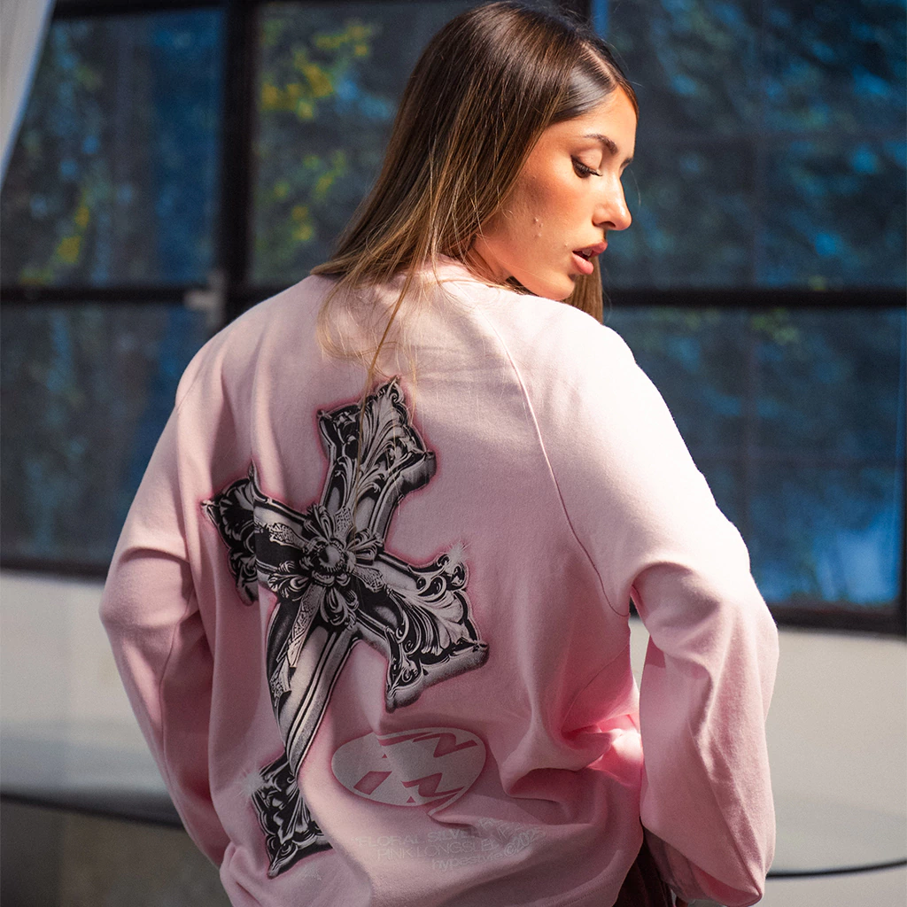 • Estampado trasero con diseño “Floral Silver Cross” en gran tamaño