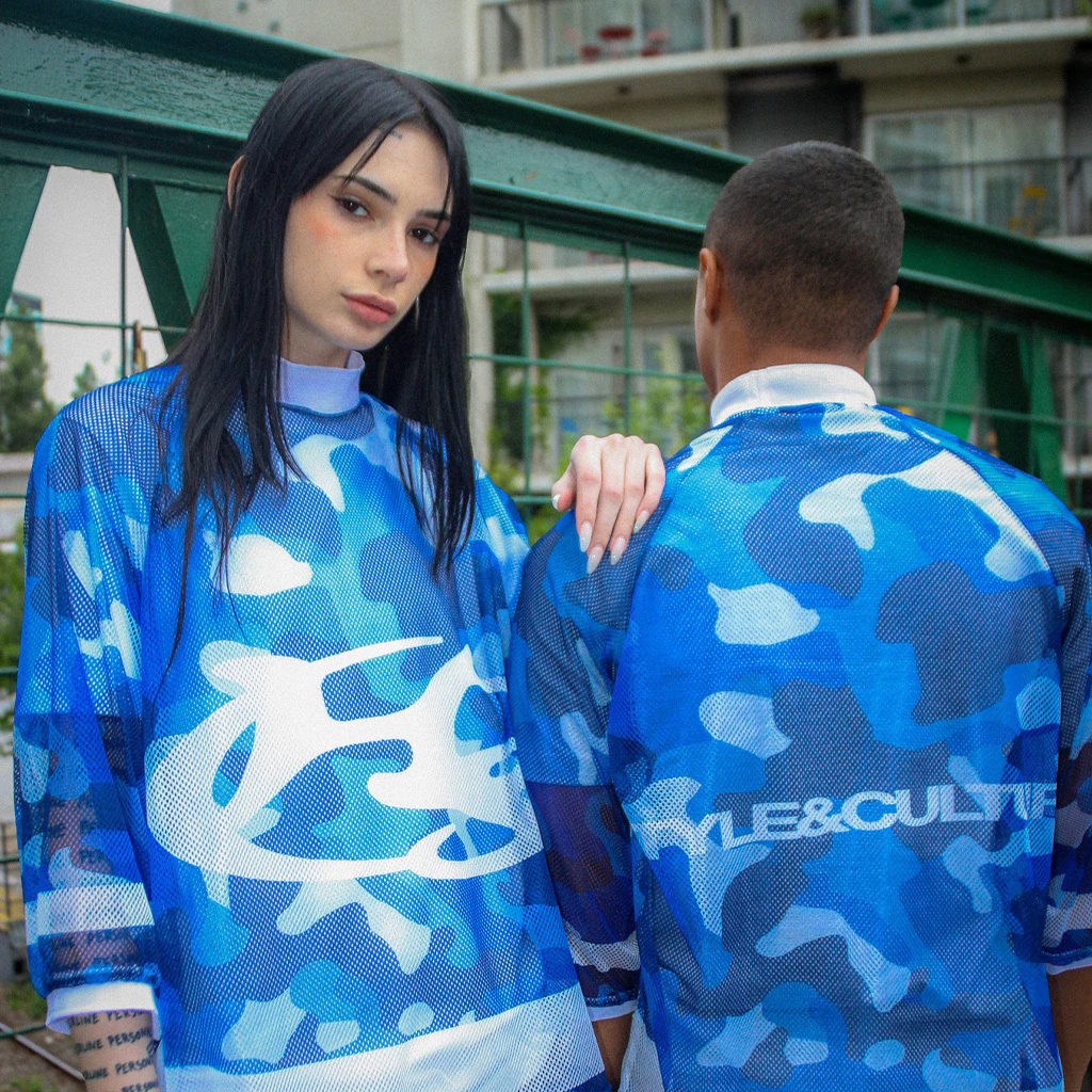 Pieza única de Hypestyle, confeccionada en mesh técnico sublimado con patrón Camo.
