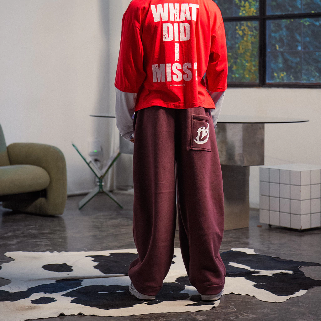 Pantalón oversized tipo bombe en color bordó